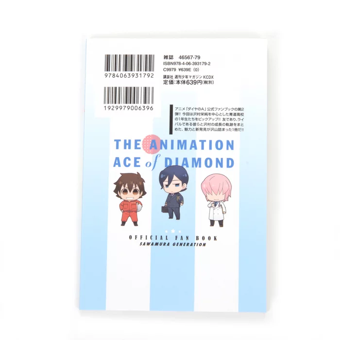 Every Ace of Diamond fan should pick up a copy of this official fan guidebook by Kodansha! In Japanese, this book contains impressive and famous scenes from the series and conversations between Ryouta Ousaka, Nobunaga Shimazaki, and Natsuki Hanae. Get a look into the minds of Yoshitsugu Matsuoka and Shouta Aoi with interviews, and add the bonus chibi illustration sticker to your Ace of Diamond treasures!