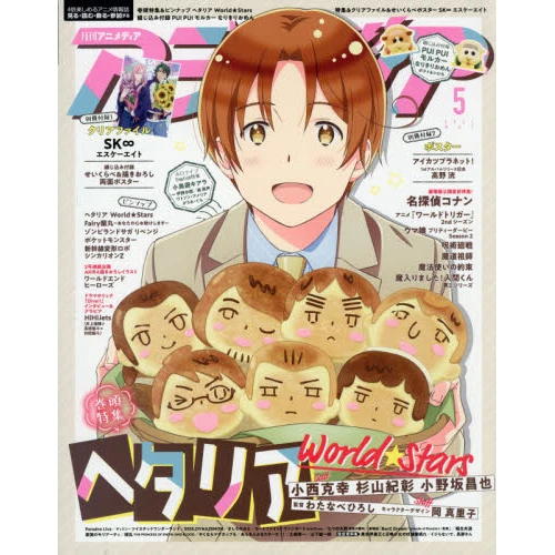 This month’s issue includes the latest news on Hetalia: World Stars, SK∞, Detective Conan, Uma Musume Pretty Derby Season 2, Mado Soshi, World Trigger, Aikatsu Planet!, Pokemon, Zombie Land Saga Revenge, SSSS.Dynazenon, Those Snow White Notes, Cardfight!! Vanguard: overDress, Jujutsu Kaisen, and more. Also included as bonuses are an SK∞ clear file, Aikatsu Planet! poster, a Pui Pui Molcar mask, and tons of must-see pin-ups!