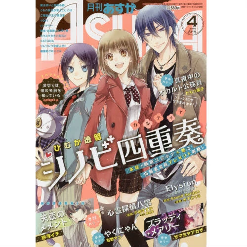 Featured on the cover of the April 2016 issue of Asuka is the romantic ninja series, Shinobi Shijuusou, and inside you’ll find the latest of your favorite serializations including Boku to Kiseki to Houseki to and Mahou Tsukai to Hoshi Furu Niwa!