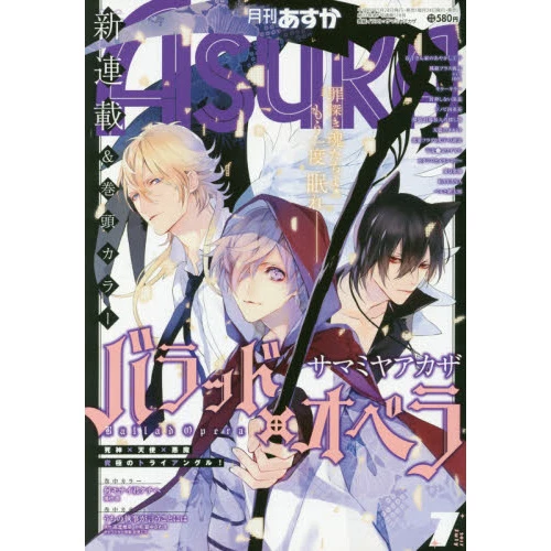 Asuka is a monthly manga publication from Kadokawa. It primarily focuses on shojo manga, and its primary demographic is teenage girls. In addition to many CLAMP works such as Clamp School Detectives, Suki: A Like Story, and X, its publications have included massive titles like Trinity Blood, as well as anime tie-ins and spinoffs of Kadokawa’s most popular works including Neon Genesis Evangelion: Angelic Days!