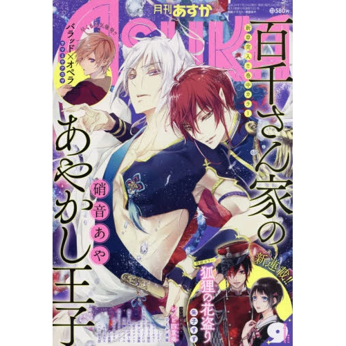 New series Kori to Hana Tori is featured in the color header section of Asuka September 2017 alongside color pages of Momochi-san Chi no Ayakashi Ouji, Houshin Shinai Engi, and Tenran no Memento.