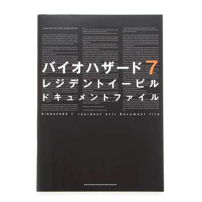 Prepare yourself for some serious creepiness as you get a behind-the-scenes look at Resident Evil 7: Biohazard in Biohazard 7: Resident Evil Document File! This 192-page Japanese book treats fans to an amazing selection of juicy info, including production secrets, development materials, previously unreleased concept art, a photo album, and even storyboards for the game's event scenes!