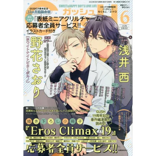 About Boy's Love Magazine Gush:Boy’s Love Magazine Gush is a monthly manga magazine published by Kaiohsha which is dedicated to all things BL (boys’ love). Each month it brings you the best currently running yaoi manga series and is an essential read for fans of the genre.