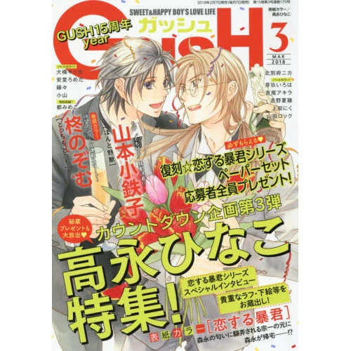 Boy’s Love Magazine Gush is a monthly manga magazine published by Kaiohsha which is dedicated to all things BL. Each month it brings you the best currently running yaoi or male same sex romance manga series and is an essential read for fans of the genre.