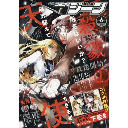 This month’s issue includes a feature on Satsuriku no Tenshi and comes with a bonus reversible desk mat.