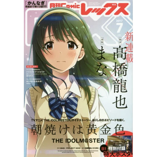 The cover illustration of Comic Rex July 2017 is dedicated to brand new series Asayake wa Koganeiro The Idolm@ster with color center pages of Tales of Berseria, and My Wife is the Student Council President.