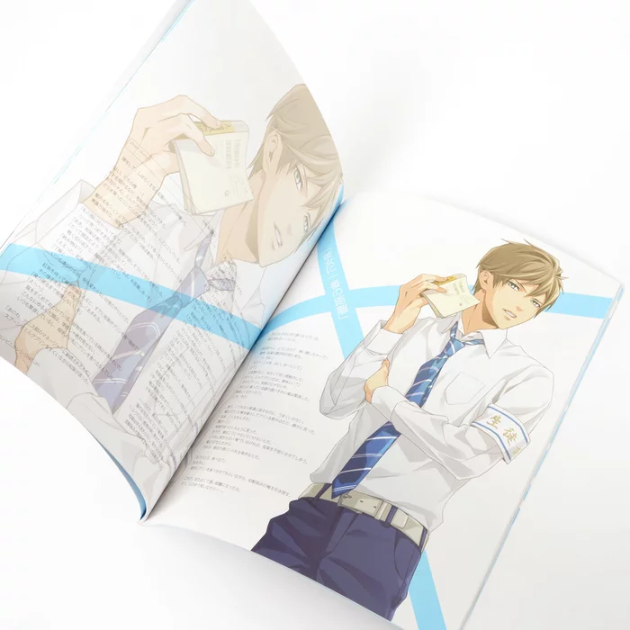 This art book is designed to help you get familiar with some rather attractive men within 40 pages, all in Japanese. The front cover is illustrated by Makoto Senzaki and gives you only a taste of what you’ll find inside, which includes a generous amount of personal data on all the male characters you’ll soon be raving about! Then finish off the experience with a bonus drama CD (70 min.), plus voice actor interviews and an autographed photo to boot!