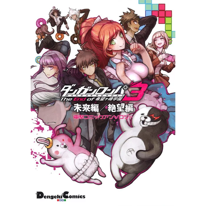 This 143-page Japanese comic anthology features color illustrations, short comics, and 4-panel manga from the Future Arc and Despair Arc of Danganronpa 3: The End of Hope's Peak High School.