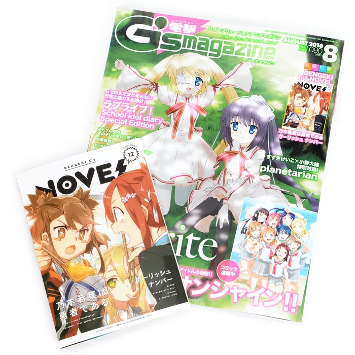 Dengeki G’s Magazine is a monthly Japanese publication from ASCII Media Works that began in 1992. It’s filled with information on bishojo games and anime, as well as serializations including both manga and light novels based on those! Famous titles that have been included are Angel Beats!, Clannad, Guilty Crown, Love Live!, and Oreimo.