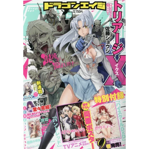 Get ready for all of your favorite series in the June 2016 issue of Dragon Age, as well as a brand new serialization! The stunning Mikoto Kiba from the series Triage X also makes an appearance on the cover, and as a special bonus, you’ll also receive a two-sided poster featuring specially drawn illustrations of High School DxD and Hundred!