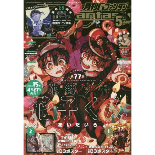 This month’s issue includes Toilet-Bound Hanako-kun on the cover, Yokai Gakko no Sensei Hajimemashita! in the opening color spot, and a center color section featuring Toilet-Bound Hanako-kun, new serial Victoria no Denkikan, The Royal Tutor, Akai Kiri no Naka kara, and the finale of Boku wa Oneko-sama no Geboku Desu. Also included as bonuses are deluxe B3 posters featuring Toilet-Bound Hanako-kun and Disney: Twisted Wonderland the Comic!