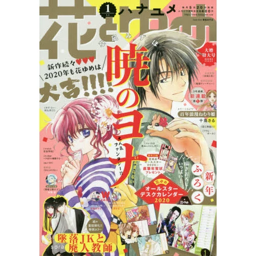 For over 40 years, Hana to Yume, (known as HanaYume to its readers) has been providing a range of enchanting shojo manga series. Some of the currently serialized series include Kamisama Kiss, The World is Still Beautiful, Oresama Teacher, Descendants of Darkness, Skip Beat!, and Akatsuki no Yona: Yona of the Dawn. Published twice a month, issues often include special bonus items such as posters, drama CDs, calendars and more! Enter the romantic world of HanaYume and fall in love with a new shojo manga series!