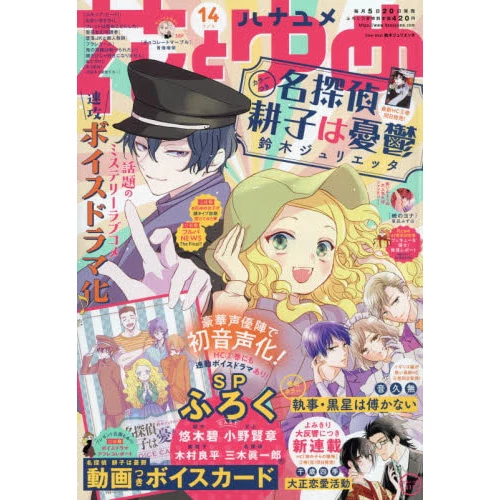 This first issue of July 2021 includes Shitsuji Kuroboshi wa Kashizukanai in the opening color spot, new serial Taisho Renai Katsudo and Meitantei Yuko wa Yuutsu in the color spot, and monochrome pages featuring Oni no Hanayome wa Taberaretai, Tsuiraku JK to Haijin Kyoushi, Skip Beat!, Namaiki Zakari, Yona of the Dawn, Colette wa Shinu Koto ni Shita, Furare Girl, Atama Dake Ja Suki ni Narimasen, one-shot Chocolate Marble, and more. Also included as a bonus is a Meitantei Yuko wa Yuutsu voice card by Julietta Suzuki!
