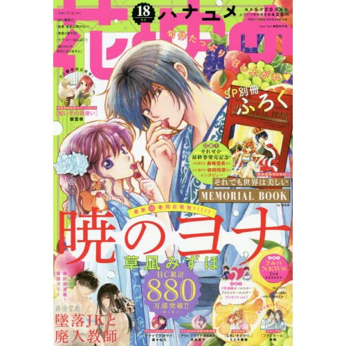For over 40 years, Hana to Yume, (known as HanaYume to its readers) has been providing a range of enchanting shojo manga series. Some of the currently serialized series include Kamisama Kiss, The World is Still Beautiful, Oresama Teacher, Descendants of Darkness, Skip Beat!, and Akatsuki no Yona: Yona of the Dawn. Published twice a month, issues often include special bonus items such as posters, drama CDs, calendars and more! Enter the romantic world of HanaYume and fall in love with a new shojo manga series!