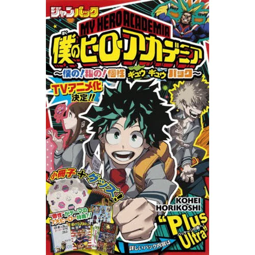 Stock up on some Quirks with this great big collection of stuff themed around your favorite guys from My Hero Academia! As well as the magazine, the pack comes with a Izuku Midoriya notebook, a Katsuki Bakugou game, a Shouto Todoroki clear file, a Ochako Uraraka air cushion, a Tsuyu Asui bookmark, a Mei Hatsume IC sticker, and an All Might book cover featuring an all new illustration.