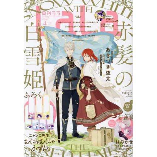 This month’s issue kicks off with a 47-page full-color feature on new serial Soredemo Otouto wa Koishitagaru, and you’ll also find one-shots Merveille no Kane and Hyoujo 0 no Kakushigoto, the finales of Majo to Tsukaima-sama and Tonari no Kurogane-sensei, and ongoing favorites including Snow White with the Red Hair, Tendo-ke Monogatari, Suenagaku Yoroshiku Onegai Shimasu, Kono Kyouai wa Tensai Desu, Kikai Jikake no Marie, Kawaii Tanuki mo Raku Janai, and more. There’s even bonus Natsume’s Book of Friends Nyanko-sensei sticky notes with fun, colorful designs too!