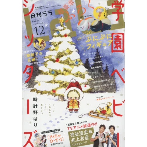 This month's issue features Gakuen Baby Sisters on the cover, and inside you'll find a color header of Ookami-heika no Hanayome, color chapters of Urakata!! and new serial Idol DTI Datsui, one shot Chiguhagu Line, plus the latest chapters of monthly favorites like Natsume's Book of Friends, Usokano, Kimi no Koto nado Zettai ni, Sabaku no Harem, and others. There's also a special interview with Hiroshi Kamiya and Kazuhiko Inoue from Natsume's Book of Friends along with a bonus set of 2 Nyanko-sensei figures!