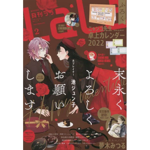 This month’s issue comes with a bonus Nyanko-sensei 2022 desktop calendar filled with fun art by Yuki Midorikawa and features new short serial Yukineko no Hana plus the latest from ongoing favorites including Snow White with the Red Hair, Kimi wa Haru ni Me wo Samasu, Kikai Jikake no Marie, Suenagaku Yoroshiku Onegai Shimasu, Mimizuku to Yoru no Ou, Gakuen Babysitters, Majo to Tsukaima-sama, and more!