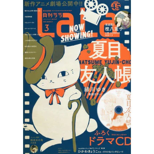 This month’s issue includes a main color feature on Natsume’s Book of Friends, plus a color section featuring Kono Kyoai wa Tensai Desu, Marriage Purple, and new serial Ojou, Omezame no Jikan Desu, and monochrome pages featuring Tensei Akujo no Kurorekishi, Reverse x Reverse, Himegimi wa Kichidancho, Suenagaku Yoroshiku Onegaishiamsu, Kikaijikake no Mary, Tendo-ke Monogatari, Kawaii Tanuki mo Raku Janai, 4 Jigen, and more. Also included as a bonus is a Natsume’s Book of Friends drama CD by Yuki Midorikawa!