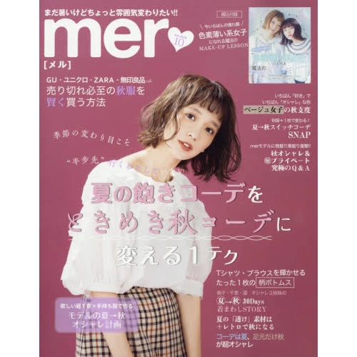 Mer is a monthly Japanese fashion magazine from Gakken Marketing featuring models chosen from its readers that focuses on looks that are affordable and easy to recreate! You’ll find all sorts of new ways to coordinate and wear your favorite old pieces, and in addition to new fashion trends, Mer also includes lifestyle articles as well as other beauty tips, making each issue a must-have for its fans!