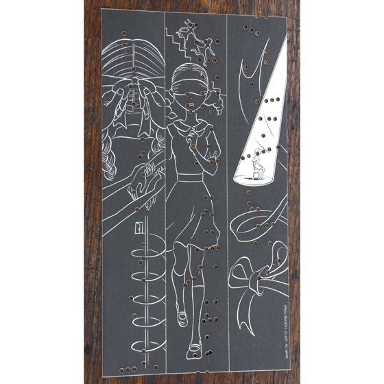 Use old-fashioned technology to enjoy manga in a new way with this paper-tape music box manga! Feed the paper sheet through a music box to watch manga artist Yuuko Uramoto’s illustrated story unfold in sync with the hole-punched melody! The front side of the sheet plays “Happy Birthday” and features colorful illustrations to go along with the cheerful music. Once you turn the sheet over, however, the tune is reversed and a new, darker image is revealed. Whichever side you choose, you’ll find something to enjoy in this unique twist on manga!
