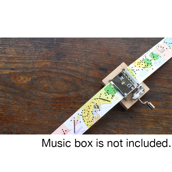 This paper-tape music box manga gives you a new way to enjoy manga using an old-fashioned twist! Feed the paper tape through a music box and watch as manga artist mashiyu’s illustrated story unfolds alongside the hole-punched melody! The paper-tape manga plays the classic aria “Nessun Dorma” from the opera Turandot accompanied by dream-like images of moons, stars and walking shrubbery. The colorful pastel artwork is playful and a little mysterious, and the music note holes create a starry design across the tape. The adorable manga makes for an original and fun way to enjoy a classic piece of music!