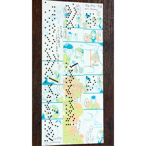This paper-tape music box manga gives you a new way to enjoy manga using an old-fashioned twist! Feed the paper tape through a music box and watch as manga artist Okaya Izumi’s illustrated story unfolds alongside the hole-punched melody! The sheet plays the tune of “Yankee Doodle” and features a short colorful manga of a man and woman singing the song in Japanese. The sheet is both a playful new take on an old classic and a peek into a part of Japanese culture, as the Japanese lyrics reveal themselves to be very different from those in the English version (and there are 29 verses!). But whether you’re singing about the Japanese Alps or Yankee Doodle, you’re sure to love this unique manga!