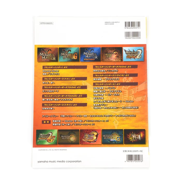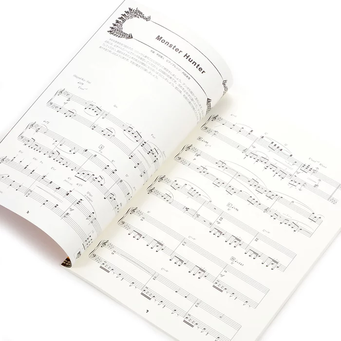 Stun friends and family by effortlessly performing fan-favorite themes familiar to any Monster Hunter lover! This music book was published by Yamaha Music Media and is in Japanese with 84 pages. Sheet music guides fans into playing solo piano arrangements using famous themes from the series and offers two different versions dependent upon skill level so no fan is left out! There are 17 total songs covered.