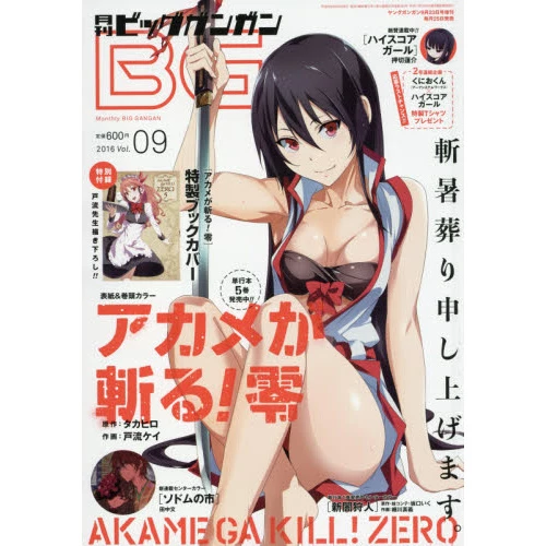 This month's issue spotlights Akame ga Kill! Zero and comes with a bonus deluxe book cover!