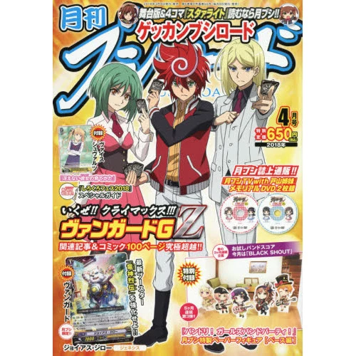 This month’s issue includes a main feature on Cardfight!! Vanguard G that includes the results of the Original G Unit Contest 2017, the latest comics including Vanguard G Stride Generation,. Another Vanguard: Seido no Asuka, Mini Van, and Card Game Shiyoko, plus a bonus BanG Dream! Girls Band Party! deluxe papercraft figure and promotional cards for Vanguard and Weiß Schwarz that you won’t want to miss.