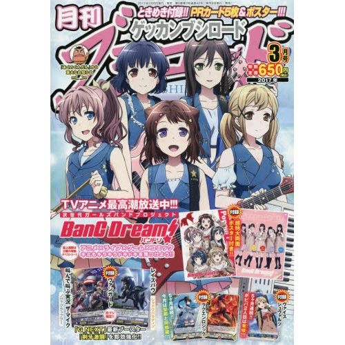 Cover artwork and main feature on BanG Dream! including the latest on the anime, live shows, games, trading card game Poppin' Party, and comic