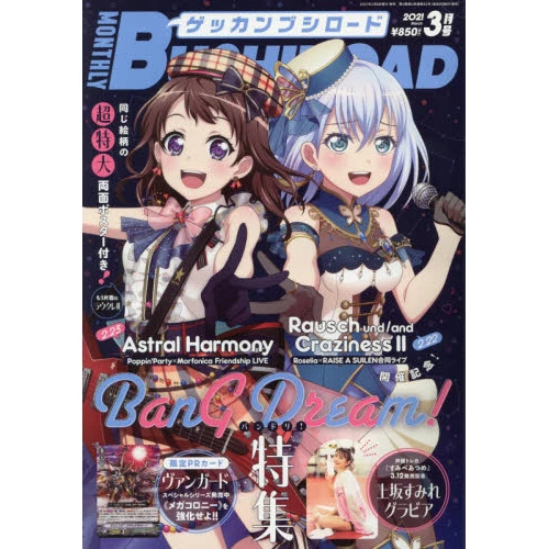 This month’s issue includes must-see features on BanG Dream! and Cardfight!! Vanguard plus a special gravure section featuring Sumire Uesaka. There’s also plenty of comics to get caught up on including Raise! The Story of My Music, BanG Dream! Garu Piko Comic Anthology 3, Cardfight!! Vanguard: Turnabout, Teppen!!!, Assault Lily: LEague of Gardens -Full Bloom-, D4DJ -The Story of Happy Around!-, D4DJ -4-Koma Mix!-, Card Game Shiyoko, Yonkoma Starlight, and more. Included as bonuses are a Cardfight promo card and a double-sided BanG Dream! poster!