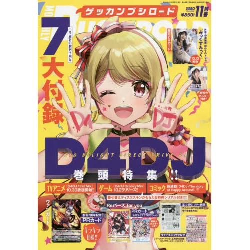 This month’s issue includes a main feature on new multimedia project D4DJ plus features on BanG Dream! including a live report from their eighth concert, Cardfight!!, and new TCG project Reverse. Bonuses include a D4DJ Groovy Mix download code, promo cards for Cardfight!! Vanguard, Reverse for You, and Mix Mikku, a Weiß Schwarz booster pack, and B2 posters!