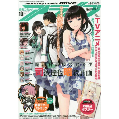 With young adults as its target demographic, Monthly Comic Alive is a monthly publication from Kadokawa with an emphasis on manga adaptations of light novels from the same publisher, although some originals have been featured. Popular serializations have included The “Hentai” Prince and the Stony Cat, Kantai Collection and Zero no Tsukaima, and issues often include small presents and posters!