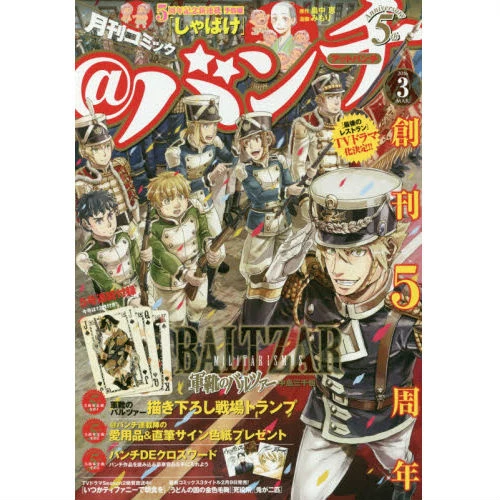 In honor of five years of publication, the March 2016 issue of Monthly Comic @Bunch is extra-large and packed with their most popular serializations, and as a special present, also includes a playing card featuring a specially drawn Gunka no Baltzar illustration!
