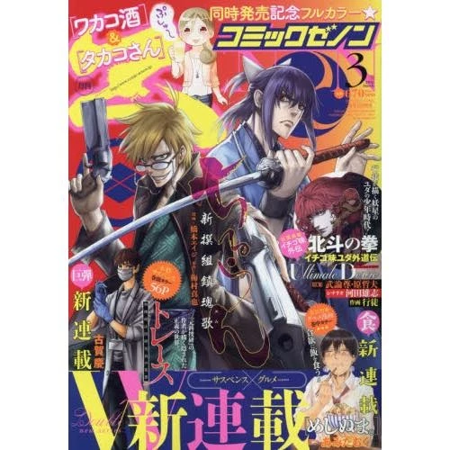 Featured on the cover of the March 2016 issue of Monthly Comic Zenon is Chiruran: Shinsengumi Chinkonka!