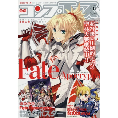 Latest serials including Fate/Apocrypha, Piyoko to Makaicho no Hime-sama, Kujonin, Noble Witches, LV999 no Murabito, Overlord, Frame Arms Girl: Lab Days, Saga of Tanya the Evil, Fate/kaleid liner Prisma Illya 2wei!!, Fate/Extra CCC FoxTail, Hybrid × Heart Magias Academy Ataraxia, and Isekai wa Smartphone Totomoni