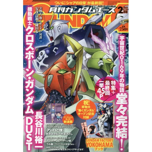 This month’s issue features the must-see finale of Mobile Suit Crossbone Gundam: Dust and comes with a bonus booklet all about Japan’s actual life-size moving Gundam.