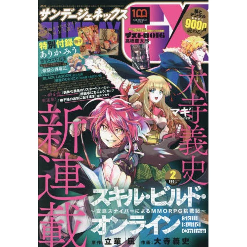 This month’s issue features new serial Skill Build Online -Hentai Sniper ni Yoru MMORPG Chousenki- in the opening color spot, plus you’ll also find the latest from ongoing series including Bonno Saiyuki, Black Lagoon, Black Lagoon: Sawyer the Cleaner, Kusuriya no Hitorigoto: Neko Neko no Koukyu Nazotoki Techo, Sabage Panashi, Vampires, and My Teen Romantic Comedy SNAFU @comic, as well as one-shot Pendetta. There’s even a bonus Bonno Saiyuki photo book and a serial code for a digital copy of the issue!