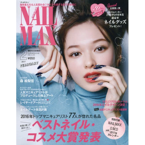 This February 2017 edition of Nail Max is a 20th anniversary special and includes a rundown of some of the best products from 2016! It also marks the first cover appearance for Erika Mori and comes with a bonus Nail Max x O.M.D 2017 calendar!