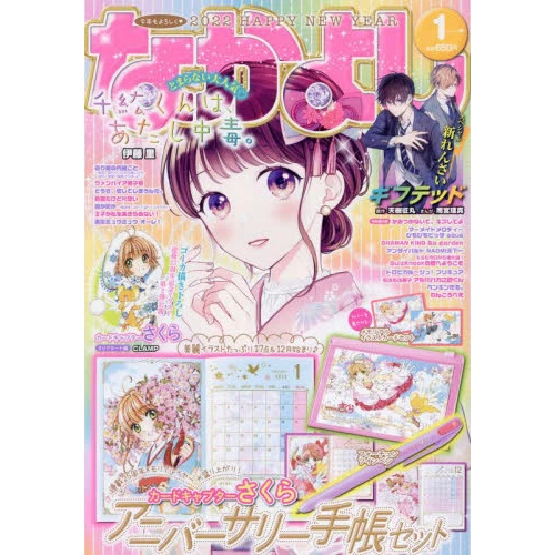 This month’s issue includes new serial Gifted in the opening color spot, a color section featuring Cardcaptor Sakura: Clear Card, the finale of Kimi mo Kyo kara Toudaino! QuizKnock no Kan e Youkoso, and Kamitsukanaide, Kiss Shite yo, plus monochrome pages featuring Shaman King & a Garden, Penguin-tachi, Koisuru Bokura no Naisho Hanashi, Vampire Danshiryo, Shinkon Dake do Kataomoi, Tropical-Rouge! PreCure, Ouji ga Watashi wo Akiramenai!, and more. Plus, also included as a bonus is a Cardcaptor Sakura anniversary notebook set!