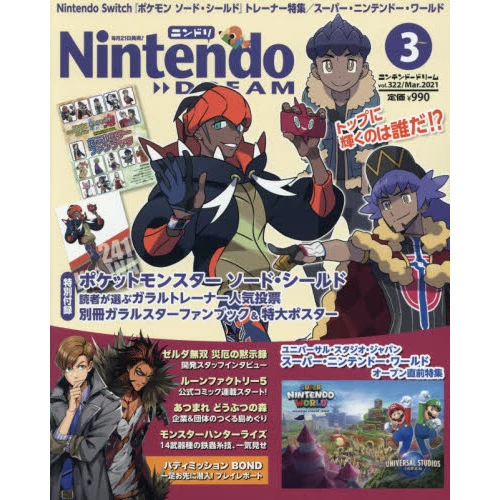 This month’s issue includes main features on Super Nintendo World and Hyrule Warriors: Age of Calamity that includes interviews with the development team. There’s also special features on the 35th anniversary of the Super Mario Bros. series and Animal Crossing: New Horizons, as well as news on the Monster Hunter series, Buddy Mission Bond, and Rune Fantasy 5. It comes with a bonus Pokemon: Sword/Shield fanbook and poster too!