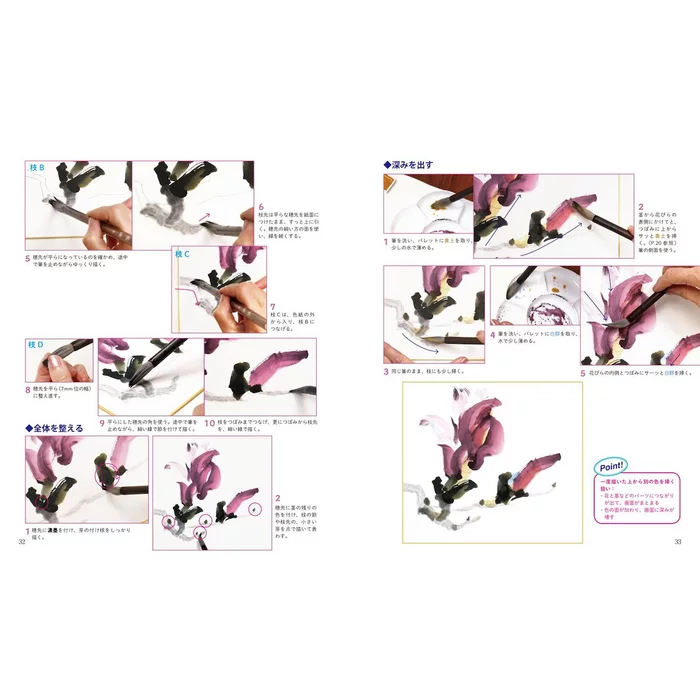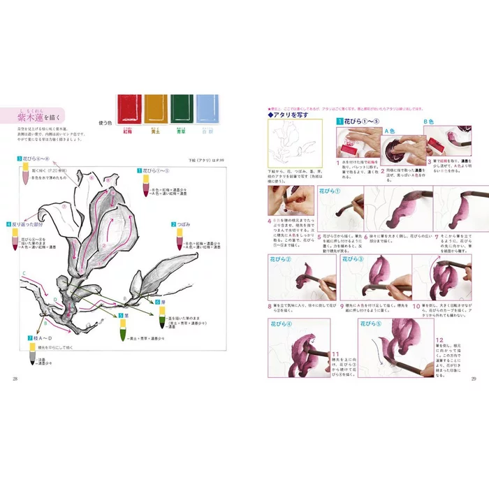 It includes 111 pages in Japanese of techniques and explanations on how to create a piece without using outlines, as well as other skills like diluting effectively to create shades and tints. It’s packed with photos, as well, so even if you can’t read Japanese, there’s a lot that can be gained from this book!
