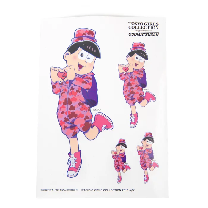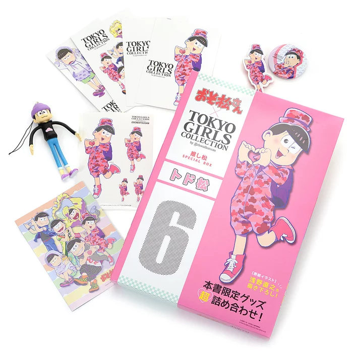 The Osomatsu boys are trying the catwalk on for size with this special collaboration with the popular fashion show Tokyo Girls Collection! These special boxes have been designed to celebrate the event and feature all new illustrations of the sextuplets by Naoyuki Asano. Inside each box you’ll find a wobbly figure-style charm, four postcards, a diecut badge, A6 size sticker, full-color booklet (four pages A6 size), and a tin badge which is exclusive to this limited edition set.