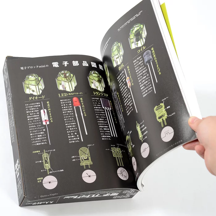 The 32nd volume of Otona no Kagaku Magazine comes with the Electronic Blocks Mini, a safe and simple yet amazing device which can be connected in 50 different ways, each with its own unique function and a scientific principle behind it! By arranging the 25 blocks on the transistor board in different variations, you can recreate inventions from the AM radio to a simple electronic instrument! In this volume, learn about the principles of electricity, and recreate 50 different devices that electricity has brought us!