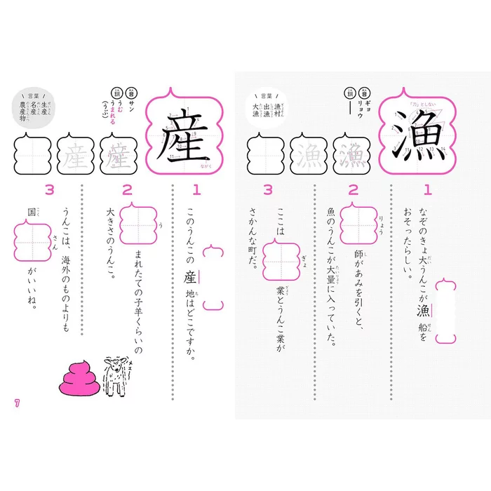 What’s more, there are three example sentences for each of the 200 kanji, all featuring "poop" in them! Just to give you a taste:“I can adjust the length of my poop to a degree.”“You mustn’t poop on cow pastures.”“A poop the size of a newborn lamb”