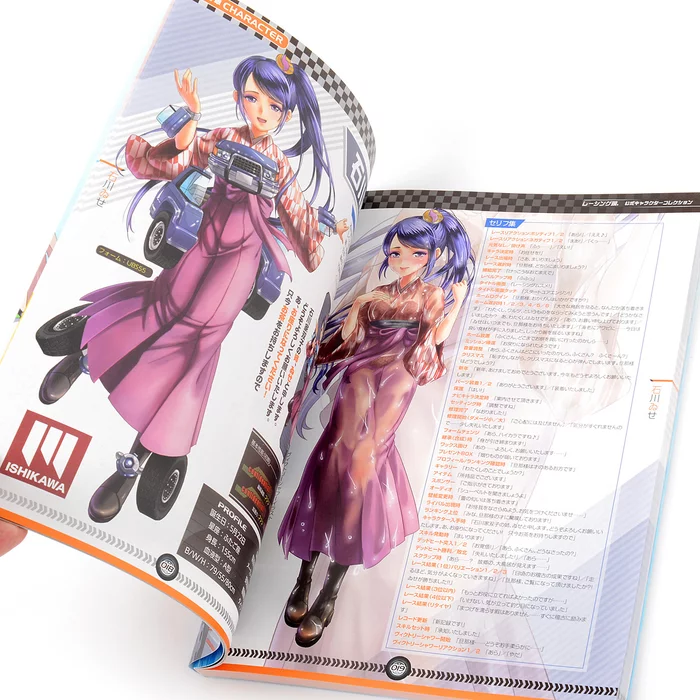 This beautiful character collection book celebrates some of your favorite heroines from the cute world of Racing Girls – the fun game in which features top sports cars re-imagined as, yes you guessed it, adorable young girls. The B5 size, 129 page book is full of wonderful illustrations from the game and is the handbook every track side coach has been waiting for!