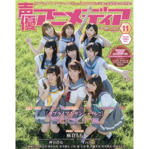 This month's issue spotlights the voice actresses who make up the idol unit Aqours from the popular anime Love Live! Sunshine!! along Momo Asakura whose first solo album lands on Nov. 2. Inside you'll find a 30-page spread on the Aqours girls including solo and group interviews and a special pinup section featuring all 10 members. Other news includes live reports from Hiroshi Kamiya's 2016 Live Theater and Hiroyuki Yoshino's Live Tour 2016 Dramatic Surf Coaster, a look at TrySail's new photo book, and more!