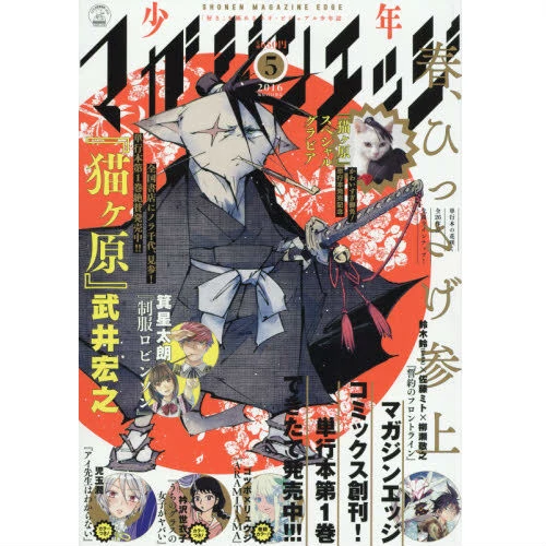 This May 2016 edition of Shonen Magazine Edge features hit series Nekogahara on the front cover as well as a special color gravure photo article inside! That’s in addition to a color header of Aramitama and color pages of Uchi no Class no Joshi ga Yabai, and Ai Sensei wa Wakaranai.