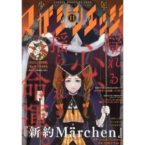 This month's issue has a feature on Shinyaku Marchen plus color chapters of Maou Install, B no Shokutaku, and Sugar Dog, a special one-off titled Nobunya no Yabou, and the latest serials including Ai-sensei wa Wakaranai, Mashiro-kun, Aramitama, Uchi no Class no Joshi ga Yabai, Crisis Girls, Tell Your Story, and tons more.